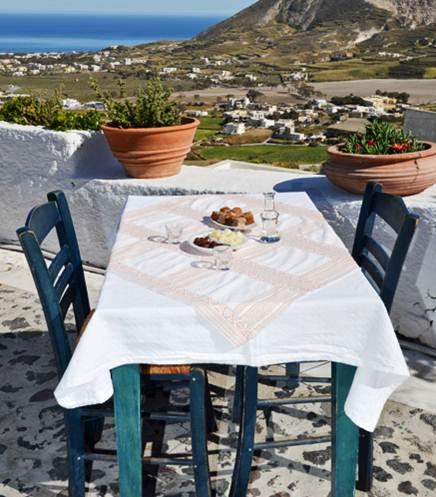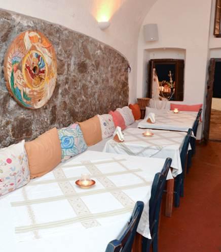 Here you can taste authentic Santorini salad (using season products) or delicious "Cretan" with tomato, cucumber, pepper, potato, cheese, olives and crackers. Here you can taste local island cuisine with fava beans and white eggplant in the oven, main dishes such as fillet with Vinsanto sauce or boneless pork chops with orange sauce and jacket potato.